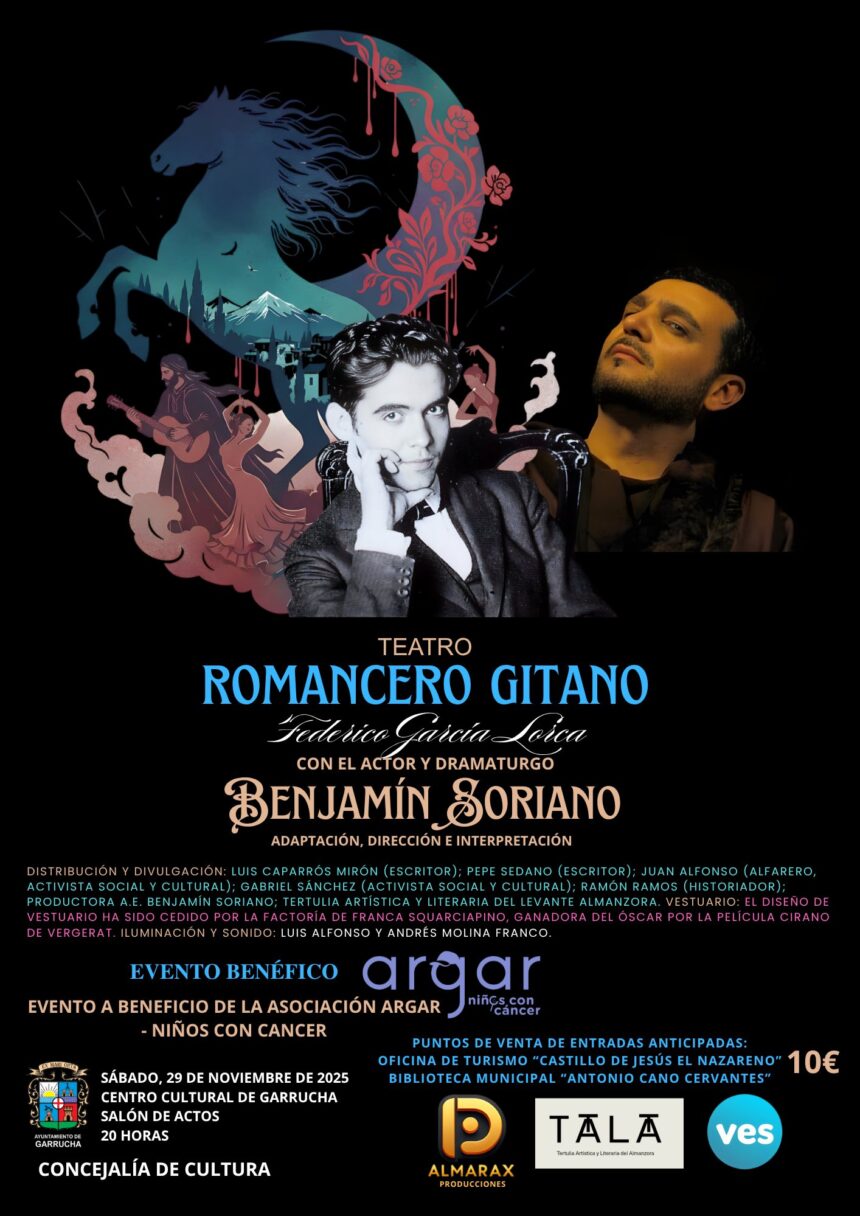 🎭 Romancero Gitano – Evento Benéfico en Garrucha a favor de ARGAR (Niños con Cáncer) La Concejalía de Cultura del Ayuntamiento de Garrucha, junto al prestigioso actor y dramaturgo Benjamín Soriano, organizan un evento cultural solidario a beneficio de la asociación ARGAR – Niños con Cáncer.Una cita única donde arte, emoción y solidaridad se unen con un objetivo fundamental: brindar…