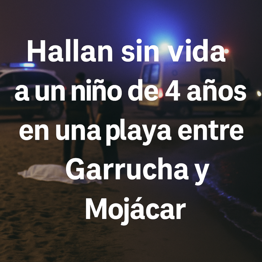 Trágico suceso en el Levante almeriense: un niño de 4 años ha sido encontrado sin vida en una playa entre Garrucha y Mojácar. La madre ha sido detenida y la investigación sigue…