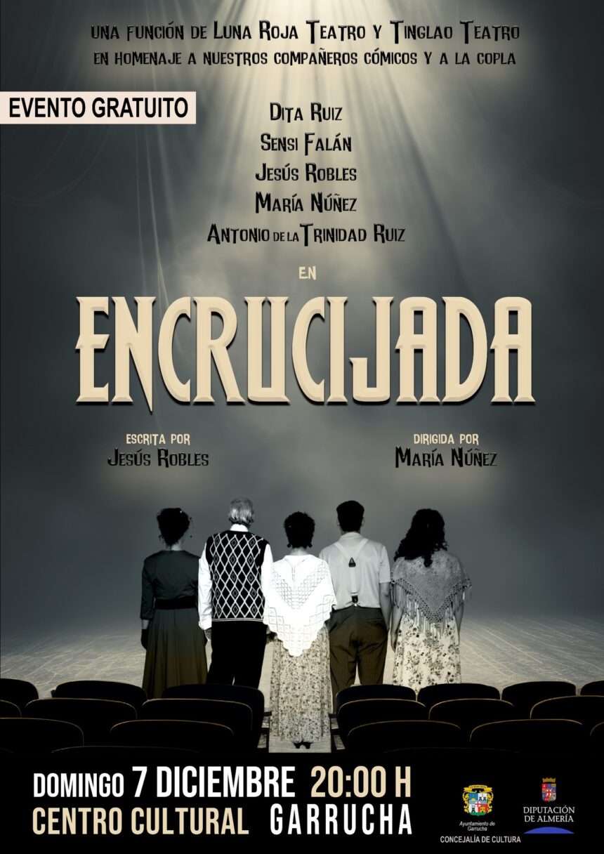 La agenda cultural de Garrucha continúa creciendo este mes de diciembre con la llegada de “Encrucijada”, una obra teatral cargada de emoción, homenaje y memoria colectiva. El espectáculo se celebrará el domingo 7 de diciembre, a las 20:00 horas, en el Centro Cultural de Garrucha, con entrada gratuita para todos los asistentes.